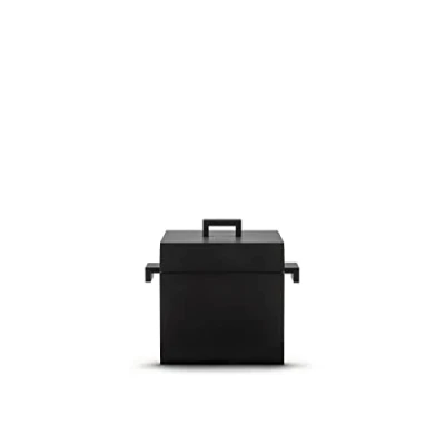 Excellent aluminum cocotte for the preparation of risottos, meats and many other dishes, ideal for a healthy and low-fat cuisine Designer: Aldo Rossi Material: aluminum Dimensions: Length 21.5 cm, Width 17 cm, Height 19.5 cm The Cubica represents the translation of Aldo Rossi's architectural language into small design objects