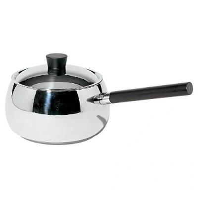 Mami Range Bourguignonne casserole with long handle in 18/10 stainless steel Heat diffusing bottom and handle in black wood Designed by Stefano Giovannoni Dimensions: 19.5cm x 15cm x 35cm