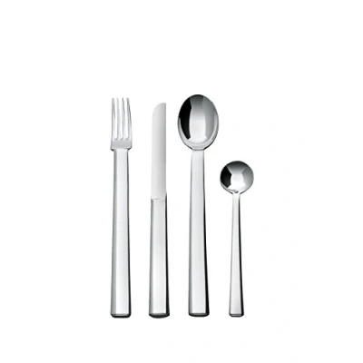Alessi Rundes Modell Cutlery set composed forks, table knives, six tea spoons in 18/10 stainless steel mirror polished, Silver, 36.5x24.5x7 cm