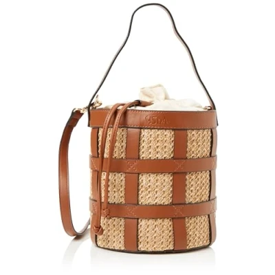 Bucket bag with braided look Made of high quality imitation leather Short handle Textile inner lining with inner pocket Removable and adjustable shoulder strap