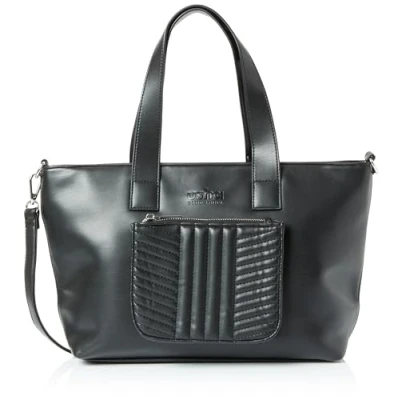 Feminine shopper Made of light canvas fabric Faux leather patches with crocodile embossing Large lined interior Side inner pocket