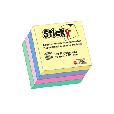250 Sheets Pastel Coloured Adhesive Pad Removable and repositionable Size 51 x 51 mm