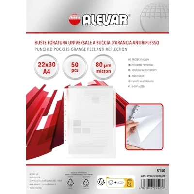 80 micron clear embossed anti-glare envelope With universal 11 hole punching and reinforced edge Size a4