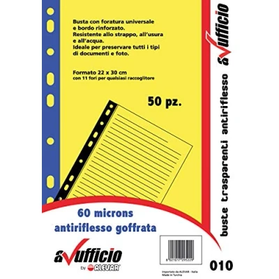 60 micron embossed clear anti-glare envelope With universal 11 hole punching and reinforced edge Size a4