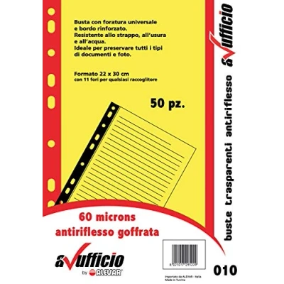 60 micron embossed clear anti-glare envelope With universal 11 hole punching and reinforced edge Size a4 Item Package Quantity: 1