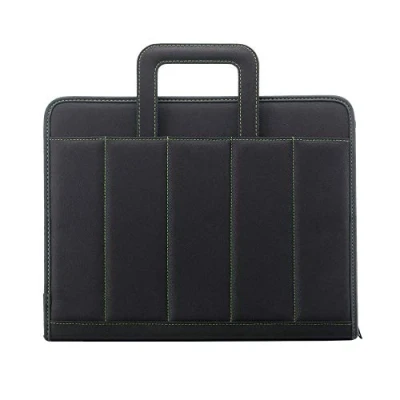 600D Polyester Portfolio With zip closure and handles, multiple pockets, complete with pad and calculator Colour black / green stitching f.to cm. 35.5 x 28.5 x 4.5