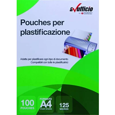 Clear pouches for airtight lamination of frequently managed documents and images, offer protection from water, tears and daily wear and tear Perfectly compatible with all popular brands of hot laminators, they are suitable for use both at home and in the office A4 size, total thickness 250 microns, (2 x 125 microns) Contents: 100 laminator sheets