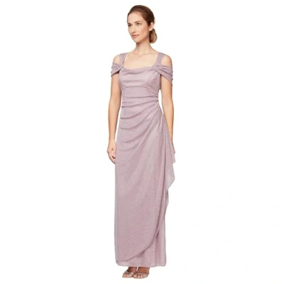 Alex Evenings Women's Long Cold Shoulder Dress, Mother of The Bride, Formal Events, (Petite and Regular Sizes) Special Occasion, Mauve Glitter, 10