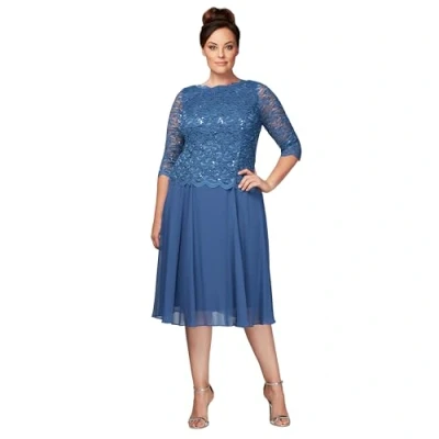 Alex Evenings Women's Plus Size T Length Lace Mock Dress Special Occasion, Wedgewood, 16W