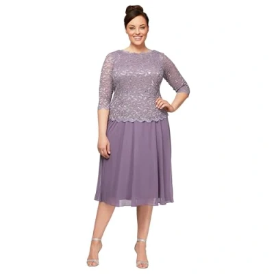 Alex Evenings Women's Tea Length Sequin Mock Dress (Petite and Regular) Special Occasion, ICY Orchid, 18