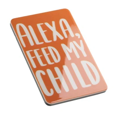Perfect gift for Birthdays, Christmas or any other occasion Fun, bold design featuring funny ‘Alexa, Feed my Child’ message Crafted from thick acrylic, this strong magnet will be a fun and colourful addition to your fridge Dispatched with presentation card as shown Unique design created in Wales