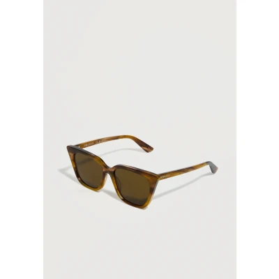 The Sunglasses Alexander McQueen AM0556S, with Frame Cat eyes in acetate are the height of elegance, with a tapered design that gives a refined and chic look. The havana color and brown lenses accentuate the elegance of the model, perfect for those who love accessories with a feminine touch. Recommended for round, oval and heart-shaped faces, as they lengthen and slim the features. Ideal for Woman.