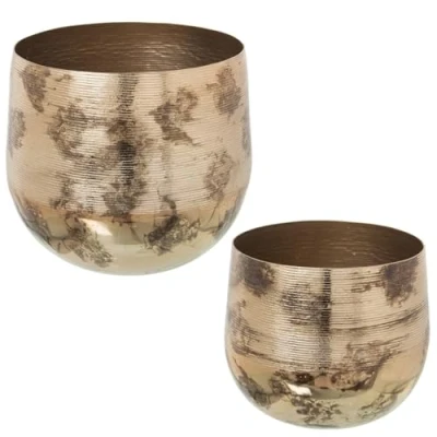 Alexandra House Living Set of Planters Golden Aluminium (2 Pieces)