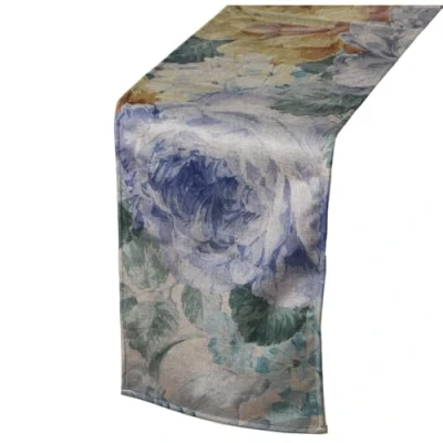 Alexandra House Living Table Runner Blue Textile 180 x 30 cm Velvet Floral Embroidered