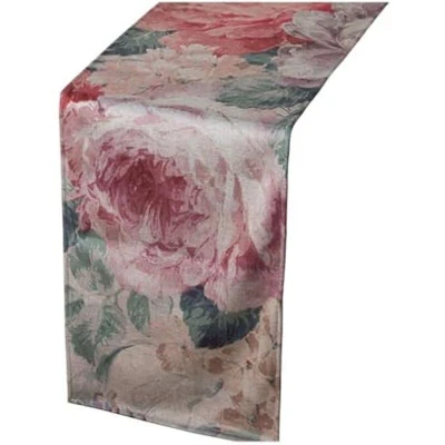 Alexandra House Living Table Runner Pink Textile 180 x 30 cm Velvet Floral