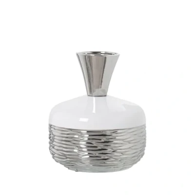 Alexandra House Living Vase White Silver Ceramic 24 x 26 cm