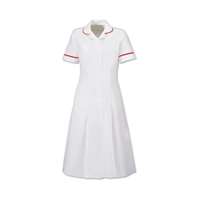 Alexandra STC HP370WRE 84 Zip Front Dress with Contrast Collar, Plain, Unhemmed, 67% Polyester/33% Cotton, Red Trim, Chest: 8, Size: cm, White