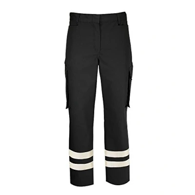 AmazonDurable women's fit 2 shaped hip pockets and self-fabric pocket bags 2 side leg bellowed cargo pockets with 1 reflective tape strip and square flaps with 2x concealed stud closure Belt loops 245gsm 65% polyester/35% cotton