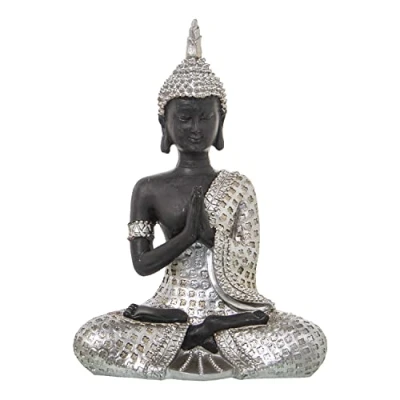 AlexandreHouse Figure Resin Buda Plateado/Brown 16 x 9 23 cm