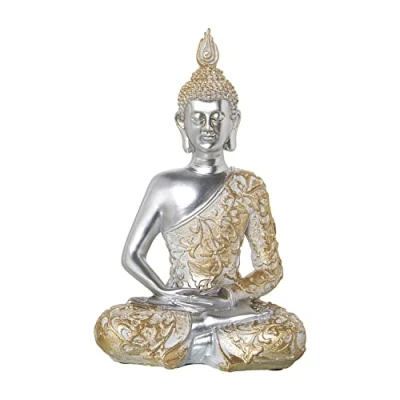 AlexandreHouse Figure Resin Buda Plateado Túnica Dorada 17 x 11 28 cm