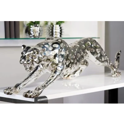 AlexandreHouse Figures Cheetah Synthetic Resin, Silver Colored, PU 1, L. 47cm, W. 145cm, H. 31cm