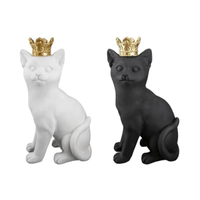 AlexandreHouse Pack of 2 Figures, Cat, Synthetic Resin, Black, White, PU 2, assorted, L. 10 cm, W. 14 H. 24 cm