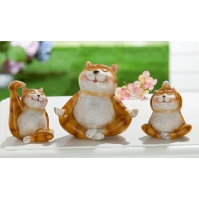 AlexandreHouse Pack of 3 Figures, Cat, Synthetic Resin, Brown, PU 3, Assorted times, L. 9 cm, W. 15 H. cm