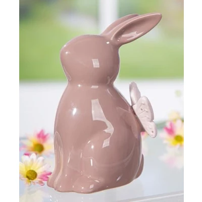 AlexandreHouse Pack of 4 Figures, Bunny, Butterfly Pattern, Porcelain, Brown, PU 4, L. 7 cm, W. 11 H. 14 cm