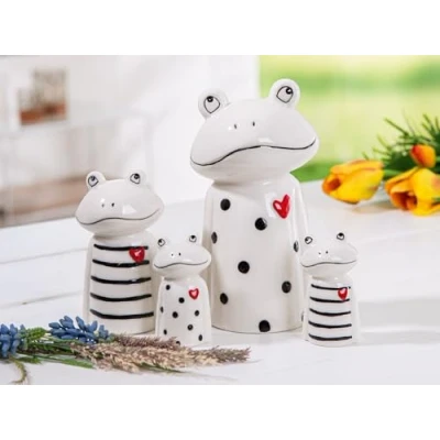 AlexandreHouse Pack of 4 Figures, Frog, Heart motif, dotted, striped, porcelain, white, PU 4, 2 assorted, L. 7 cm, W. 10 H. 17 cm
