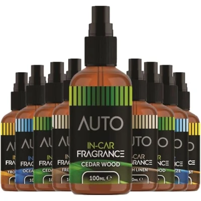 Amazon High quality in-car fragrance spray. Handy size to give a quick fresh spritz. Available in 4 fragrances: Fresh Linen, Cedar Wood, Tropical Mist and Ocean Breeze