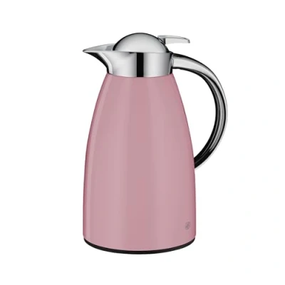alfi SIGNO 1.0 L Pink Matt Stainless Steel Vacuum Flask with Hygienic Tempered Glass Insert, Screw Cap Comfortable Push Button, Ergonomic Handle, One Hand, Ideal as a Coffee Pot, Teapot