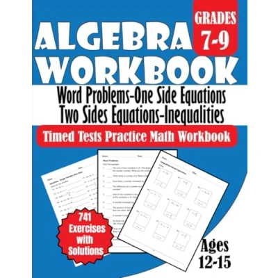Algebra Word Problems, One Side Equations, Two Inequalities Grades 7 9: Timed Tests Practice Math Workbook 741 Exercises with Solutions Ages 12 15