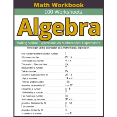 Algebra Writing Verbal Expressions as Mathematical Math Workbook 100 Worksheets: Practical Exercises for Mastering to Algebraic Expression
