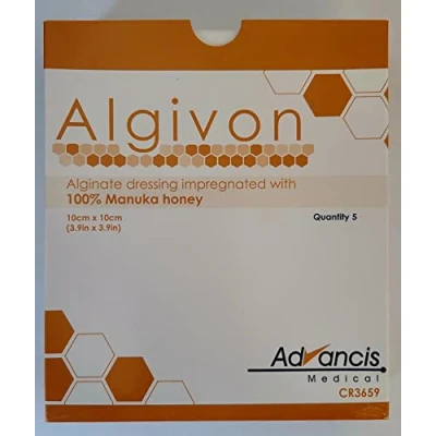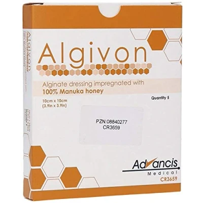 ALGIVON 10CMX 10CM ALGINATE DRESSING IMPREGNATED WITH 100% MANUKA HONEY (10CMX 10CM) X 5 DRESSINGS
