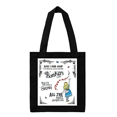 100% COTTON NATURAL TOTE BAG Tote With Open Main Compartment Crafted To Carry Up To 10kg Of Weight, This Premium Tote Bag Is Roomy And Lined With Cotton, Perfect For Everyday Use Whether You're Shopping Or Travelling, At School, Work Or Just Out With Friends. The Zippered Opening Provides Security And Protects Your Belongings, While The Internal Pocket Helps Keep Things Organised. Washing Instructions: Natural Fabrics Are Liable To Shrink Upon Wash. All Bags Have Been Prewashed To Reduce Shrinkage As Much As Possible. Machine Washable This Item Makes a Perfect Choice Of A Birthday Gift, ALice in Wonderland Gift, Bonkers Gift, Have I Gone Mad Gift, Secret Santa, Christmas Stocking Filler, Gift for Girl, Unique Gift for Sister, Special Gift for Girlfriend, You're Entirely Bonkers.