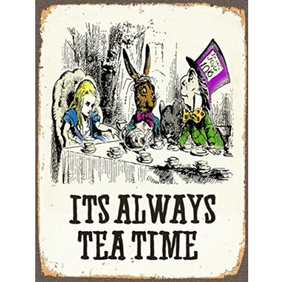 Alice in Wonderland Its Always Tea Time Metal Wall Sign Plaque Vintage Retro Poster Art Picture Print (8 x 6 (200mm 150mm))