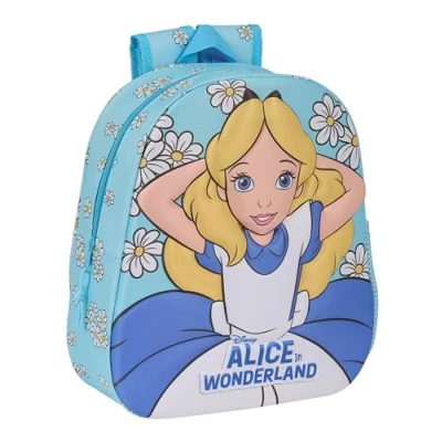 ALICE IN WONDERLAND School Backpack, with 3D Design, Adaptable to Trolley, Ideal for Children of Different Ages, Comfortable and Versatile, Quality Resistance, 27 x 10 33 cm, Sky Blue,, Light