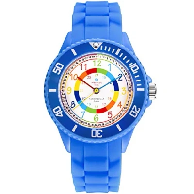 Alienwork Kids Children's Teacher Watch Boys Girls Blue Silicone Strap Multi Coloured Kid Waterproof 5 ATM Learning Time