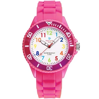 Alienwork Kids Children's Teacher Watch Girls Rose Silicone Strap Multi Coloured Kid Waterproof 5 ATM Learning Time
