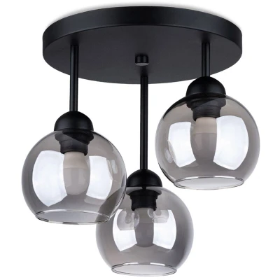 General description The ALINO 3 black chandelier is a perfect blend of functionality and decorative appeal. With its refined design, it features a deep black steel base and a tinted glass shade, making it a stylish addition to any space. This minimalist and modern chandelier combines natural materials, glass and steel, to create an elegant look that complements various interior styles. Technical specifications Light source: E27, 3x max 15W LED Voltage: ~230V Frequency: 50Hz IP rating: IP20 Protection class: I Dimensions: 35 cm x 35 cm x 35 cm Material: steel Color: black Compatibility and accessories ALINO can be combined with various finishes such as concrete, wood, metal, or steel, and is compatible with other accessories that enhance its functionality and aesthetic appeal.