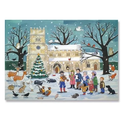 WINTER WILDLIFE ADVENT CALENDAR: Traditional paper countdown calendar featuring charming British winter wildlife scene - 24 doors reveal festive illustrations of red-breasted robins, barn owls, and foxes in snowy church setting for British families LARGE A3 SIZE (29.7 x 42cm): Generous display size ideal for hanging in any room - creates a beautiful festive focal point throughout December celebrations PREMIUM UK CRAFTSMANSHIP: Made from high-quality durable cardboard in England - built to last for years of celebrations and Christmas traditions ALISON GARDINER DESIGN: Features beloved illustrations by renowned British artist - authentic traditional artwork with exceptional architectural detail and religious charm CHOCOLATE-FREE FAMILY FUN: Safe for all ages with beautiful festive illustrations behind each door - no allergy concerns or mess, perfect for schools and homes