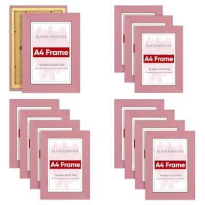 Alison Kingsgate A4 Black Photo Frame in Size 29.7x21cm Use for Certificate Pictures/Photos/Posters, with Clear Perspex Sheet & Wall Mounted Hook (A4 x 12 Pack, Pink)