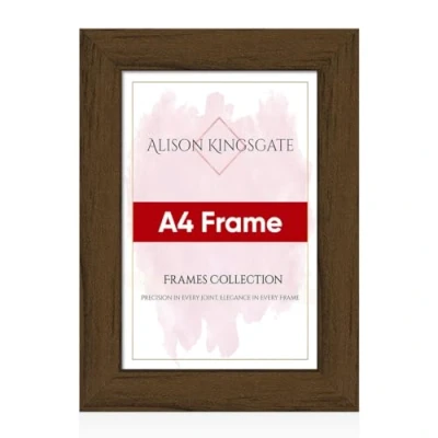 Alison Kingsgate A4 Frame Walnut in Size 29.7 x 21cm Use Pictures Frames Poster with Clear Perspex Sheet & Wall Mounted Hooks (Walnut)