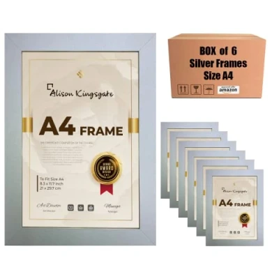 ✅ FRAME DESCRIPTION - Give your home with Alison Kingsgate handmade a4 silver wall frame pack of 6 - Passionately Crafted. We use TOP quality MDF mouldings for our all box 6 a4 frames - Our All frames a4 frame pack of 6 are hand-made by highly skilled craftsmen. An ideal choice for wedding photo frame, baby photo frame, friend photo frame, a4 frame multipack, photo frame family, silver a4 frames, Box of 6 A4 Picture Frames, wall picture frames, best friend picture frames. ✅ DISPLAY - All a4 picture frames can be Wall Mounted, Freestand and can be framed as a Portrait or Landscape. A4 Frame Silver comes with both a back stand and hook. All a4 frames pack of 6 are with Shatterproof Styrene Perspex, suitable for offices and homes with children and the elderly. Box of 6 A4 photo frame is made with a Clear Perspex Sheet front which is safe and eco-friendly than glass picture frames. ✅ SIZES - These 6 a4 picture frame sizes are perfect for actual picture sizes that will fit inside the frame. We can also make custom sizes that are not listed above, please contact us for more info. The width of the frame moulding: is 25mm approx, The depth of the frame moulding: is 18mm approx. Please kindly peel off the protector films on both sides of the Perspex sheet. The Perspex has the same clarity as glass & Eco-Friendly. ✅ COLOUR - All A4 Picture Frame Pack are in a range of Colours Including Black Photo Frame - Oak Photo Frame - Walnut Frame - a4 white picture frame - Silver Frame - Grey Frame - Wooden Photo Frame and silver a4 frame pack 6 to proudly display your memories. picture frame is with Different variations in silver a4 frame pack 6, or large photo frames within Premium quality to Decor your life memories. ✅ Customer Care & Note - You are our top priority, We value every customer very highly and strive to provide the best customer service. Please note our bulk a4 frames don't come with a picture insert or any mount. Trade/ Wholesale buyers please send us a message for the best deals on larger quantities. All a4 picture frames multipack pass through our strict quality checks before dispatch. Feel Free to contact us if there is any problem. Thank you for supporting our small business.