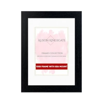 Alison Kingsgate Black 10x8 Frame with Mount For 8x6 Size (15.24 x 20.32cm) Modern Design Picture Safe Perspex Front & Wall Hanging Hooks Handmade Frames