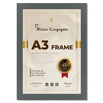 ✅ FRAME DESCRIPTION - Give your home with Alison Kingsgate handmade Dark Grey a3 frame - Passionately Crafted. We use TOP quality MDF mouldings for all a3 poster frame - Our picture frames are hand-made by highly skilled craftsmen. An ideal choice for wedding photo frame, baby photo frame, friend photo frame, a3 picture frame, family photo frame, Dark Grey photo frame, frame for a3 print, wall picture frames, best friend picture frames. ✅ DISPLAY - All a3 Dark Grey frame can be Wall Mounted, Freestand and can be framed as a Portrait or Landscape. large picture frames which are more than 12” come with a wall hook only. Photo Frames smaller than 12” come with both back stand and hook. All a3 photo frame are with Shatterproof Styrene Perspex, suitable for offices and homes with children and the elderly. Dark Grey a3 frame are made with a Clear Perspex Sheet front which is safe and eco-friendly than glass picture frames. ✅ SIZES - This A3 frame Dark Grey size is perfect for actual picture sizes that will fit inside the frame. We can also make custom sizes that are not listed above, please contact us for more info. The width of the frame moulding: is 25mm approx, The depth of the frame moulding: is 18mm approx. Please kindly peel off the protector films on both sides of the Perspex sheet. The Perspex has the same clarity as glass & Eco-Friendly. ✅ COLOUR - Our Company A3 Picture Frames are in a range of Colours Including Dark Grey Photo Frame - Dark Grey Photo Frame - Dark Grey Photo Frame - Walnut - Grey - Silver - Gold - Wooden Photo Frame And Dark Grey Photo Frames to proudly display your memories and to accent contemporary decor. We also manufacture picture frames in Different variations in square photo frame Dark Grey or large photo frames within Premium quality to Decor your life memories. ✅ Customer Care & Note - You are our top priority, We value every customer very highly and strive to provide the best customer service. Please note our frames don't come with a picture insert or any mount. Trade/ Wholesale buyers please send us a message for the best deals on larger quantities. All frames pass through our strict quality checks before dispatch. Feel Free to contact us if there is any problem. Thank you for supporting my small business.