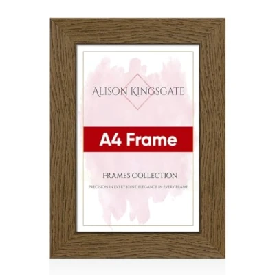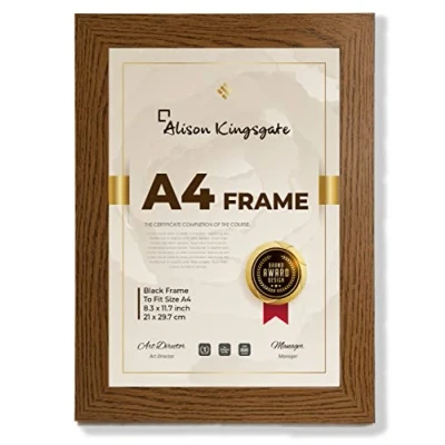 Alison Kingsgate Dark Oak A4 Frame in Size 29.7x21cm Use for Picture Frames Poster Certificate with Clear Perspex Sheet & Wall Mounted Hooks (A4, Oak)