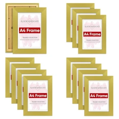 Alison Kingsgate Gold A4 Frames Pack Of 12 Frame In Size 29.7x21cm with Clear Perspex Sheet & Wall Mounted Hook Use Certificate Multipack
