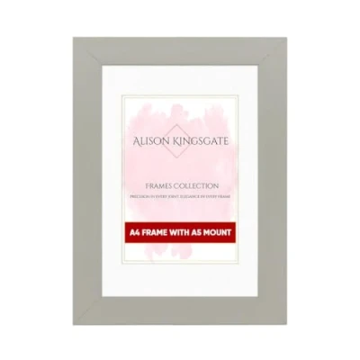 Alison Kingsgate Light Grey A4 Frame with Mount For A5 Size (14.8 x 21cm) Modern Design Picture Safe Perspex Front & Wall Hanging Hooks Handmade Frames