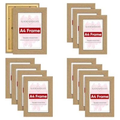 Alison Kingsgate Oak A4 Frame Set of 12 with Clear Perspex Sheet & Wall Mounted Hooks Frames in Size 29.7x21cm Pictures (A4 x Pack, Oak)